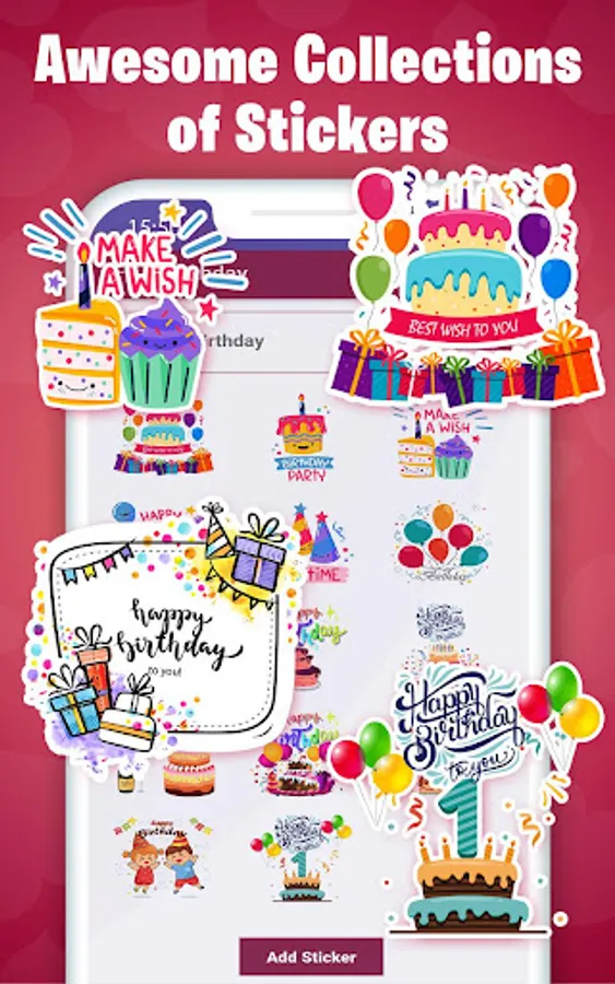 • Birthday Stickers – Happy Birthday, Make A Wish, Happy Birthday To You and more.