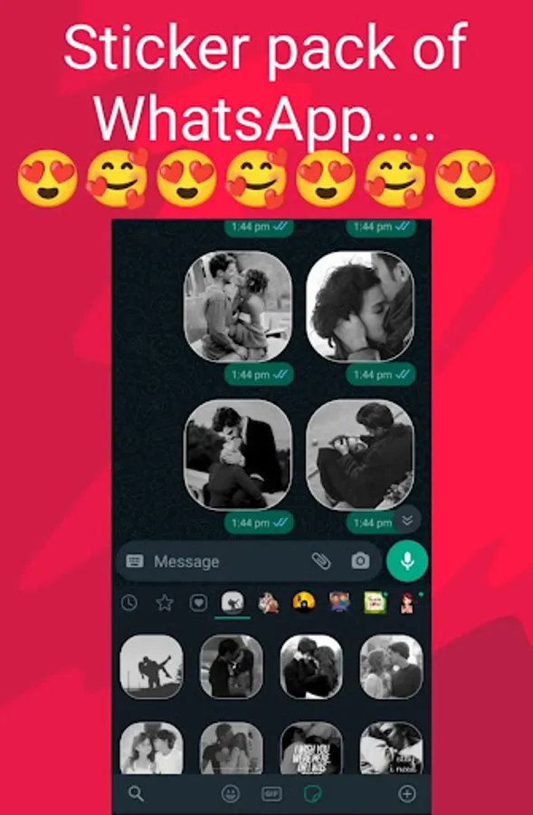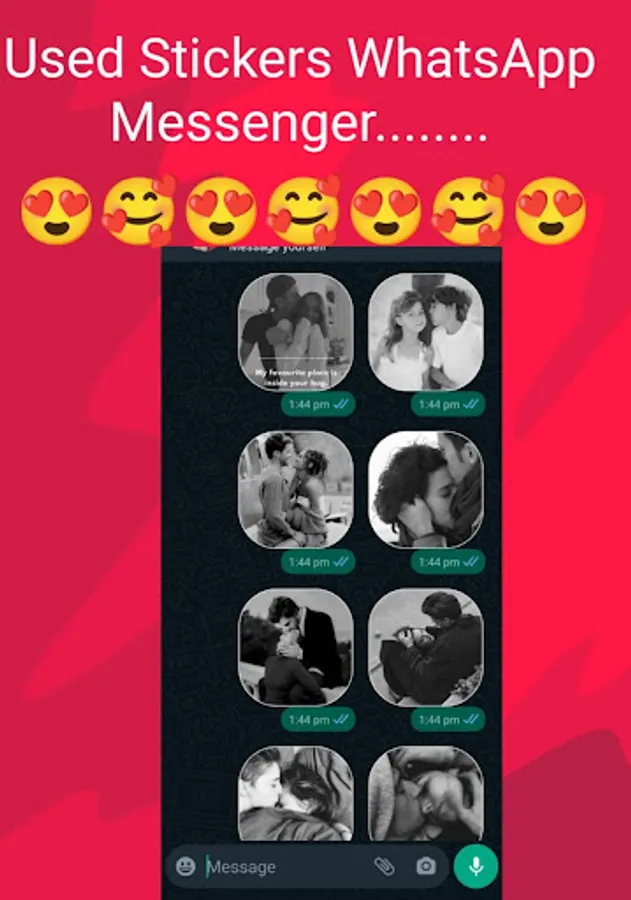 - A lot of stickers with sexy Hot Kissing and Love Emoji Stickers in HD.