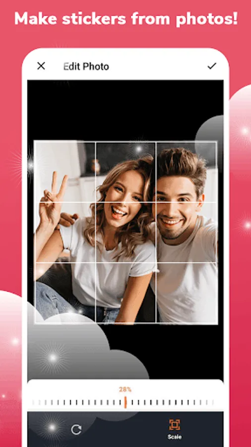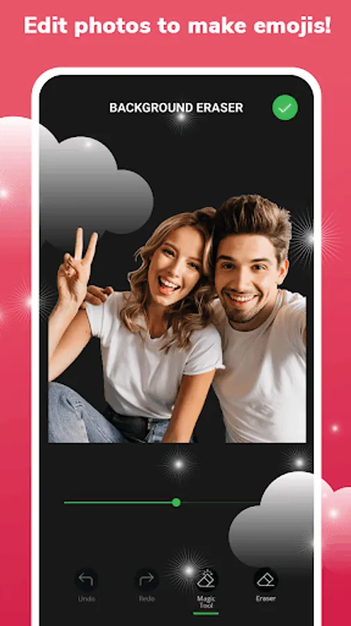 Create emoji stickers from your photos! Opt for custom, or designed smiley face emojis!