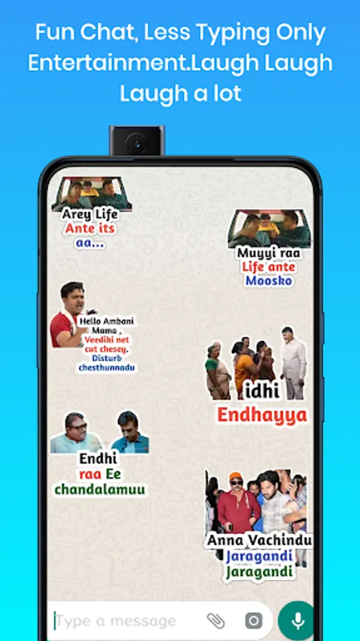 Stickers Raja is a Telugu Whatsapp stickers App. Surprise your friends and loved ones with our Telugu stickers.