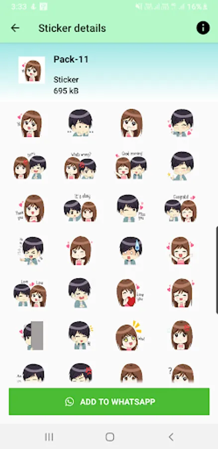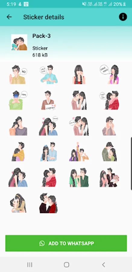 Send Couple Stickers, Romance Stickers, Hijab Stickers, Cute Stickers, WAStickerApps 2021 & Kiss Stickers to your family and friends using new WAStickerApps Couple Love Romance Sticker.
