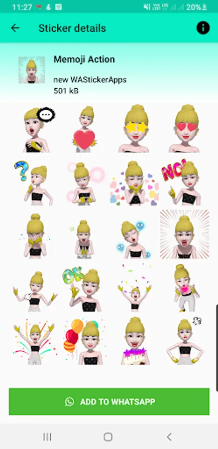 A different way to share your feelings via animated stickers for whatsapp - yellow cute girl stickers to your family and friends using this app.