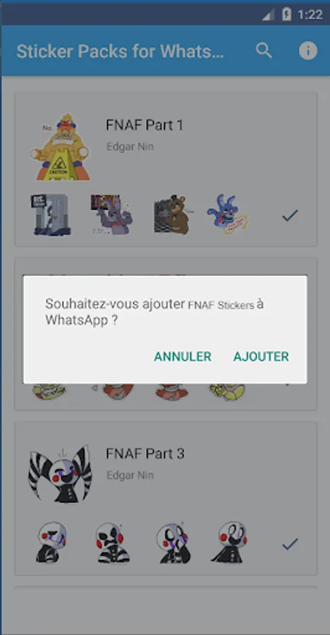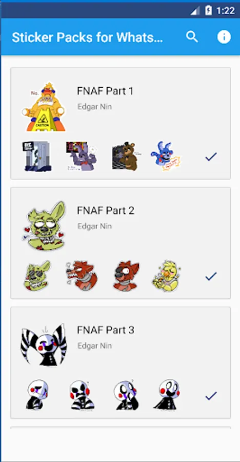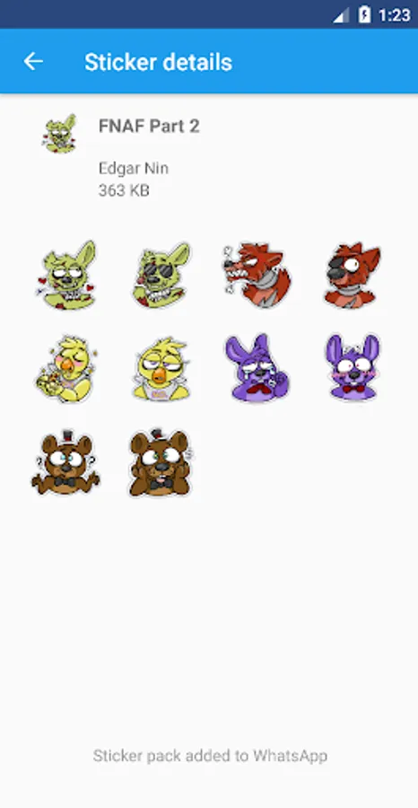 FNAF Stickers for WAStickerApps App includes a collection of Five Nights at Freddys Stickers Stickerss pack you can import and use in WhatsApp easily.