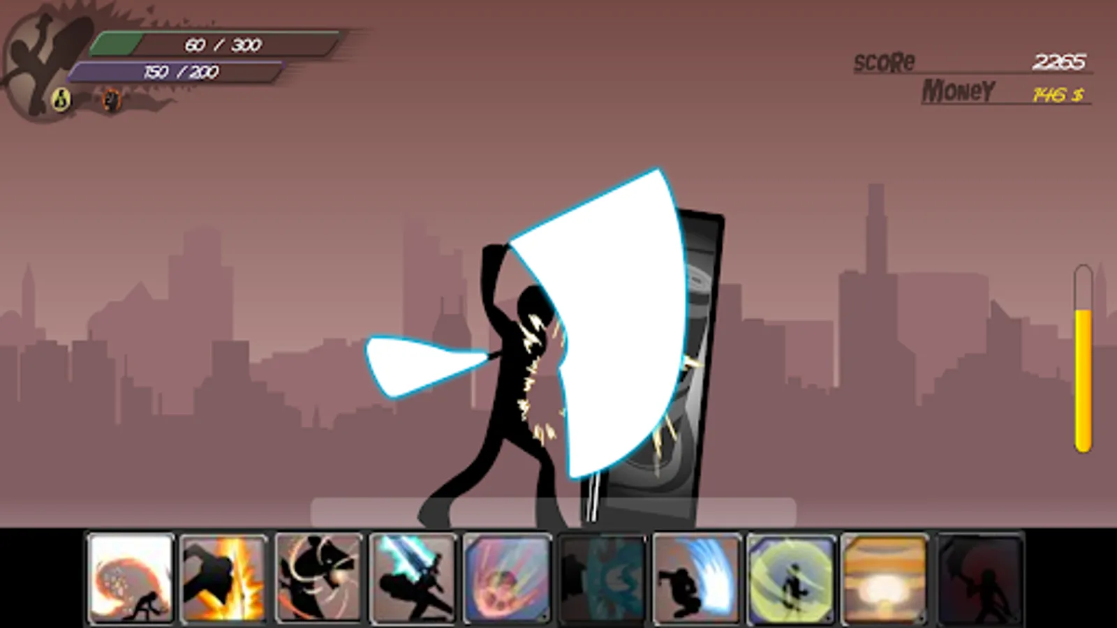 There are hundreds of attacks. You can collect money and points while attacking. And use these money to upgrade stats, unlock new skills. or buy new weapons.