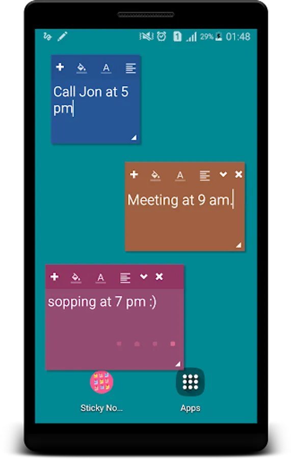 Sticky Notes is the floating application and ultimate application to create sticky notes and reminders on your Android device.