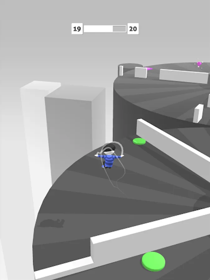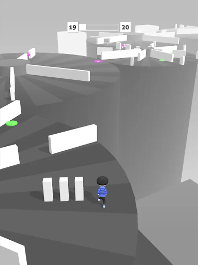Dodge obstacles using parkour elements, collect diamonds to unlock new skins.