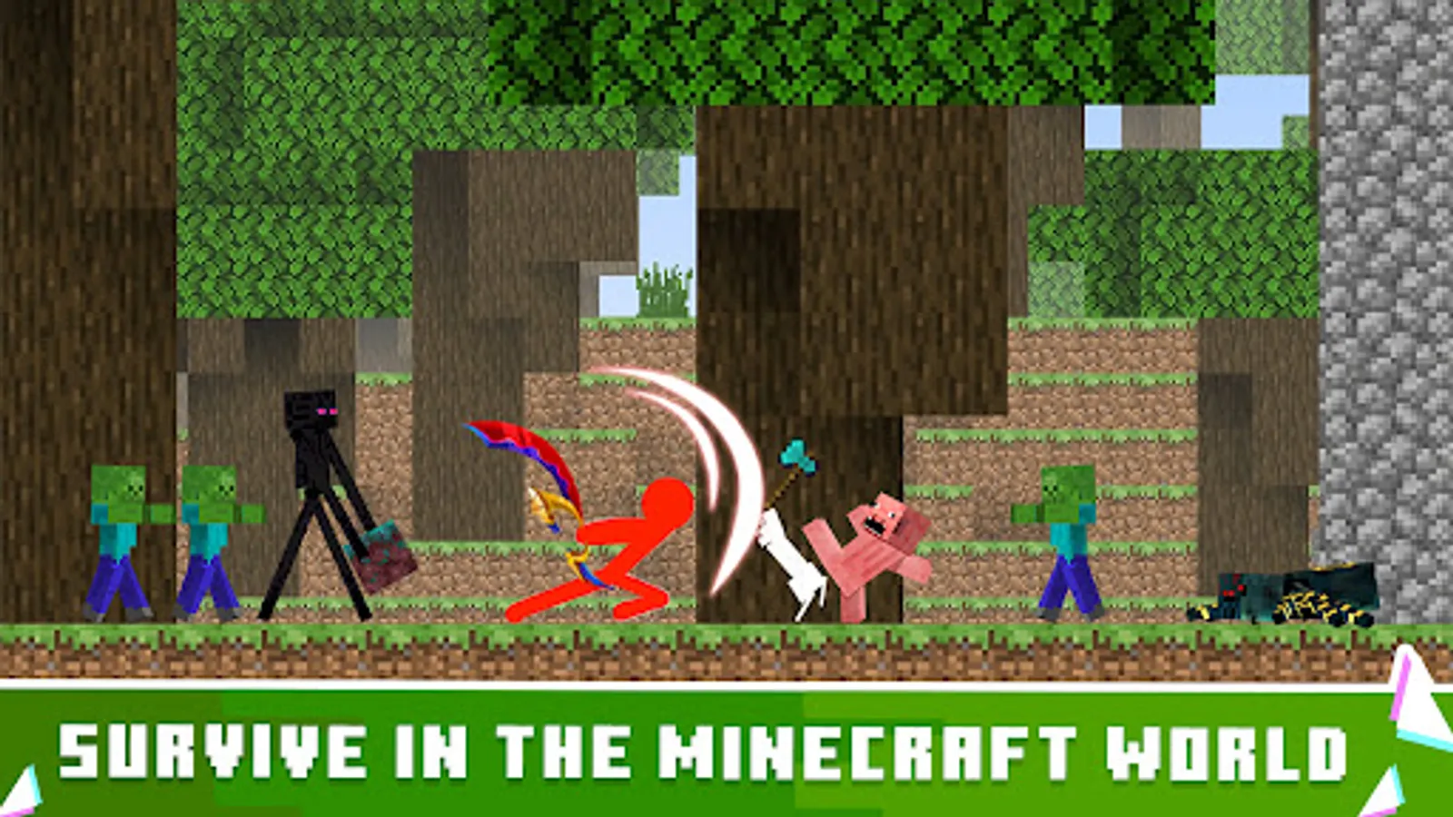 It is a perfect combination of crafting and stickman creative games. As a stickman hero, you will start a challenging craftsman adventure with various maps like skyblock and opponents from the minicraft world, you will have experiences that mix fresh experiences and familiar feelings. Moreover, you have modern weapons, slapstick, Tippmann, .... All these things will help you become a legend.