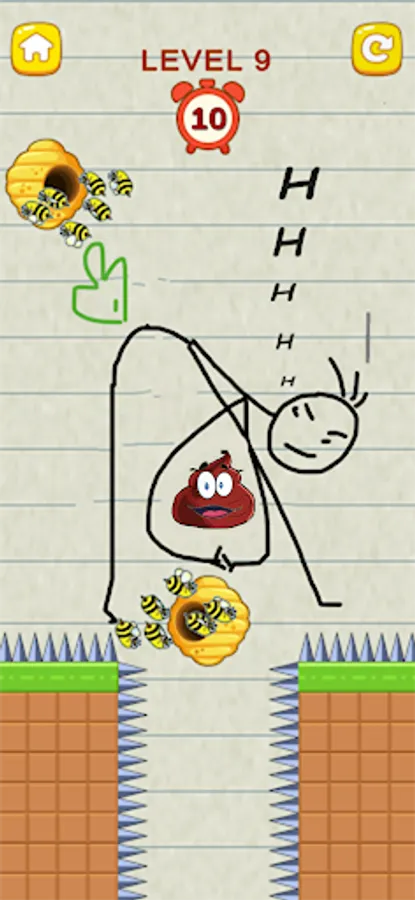 ✏️To finish the stages, lift your finger and draw a line. Don't let your lines damage the stickman.