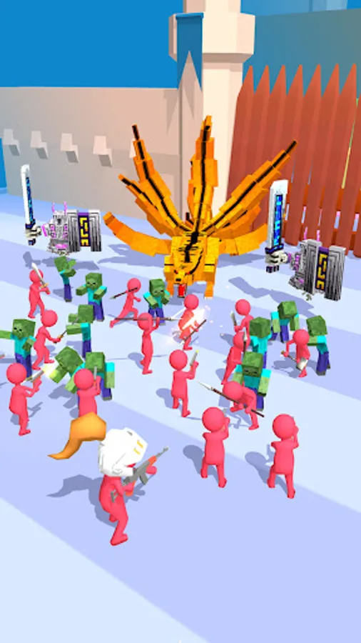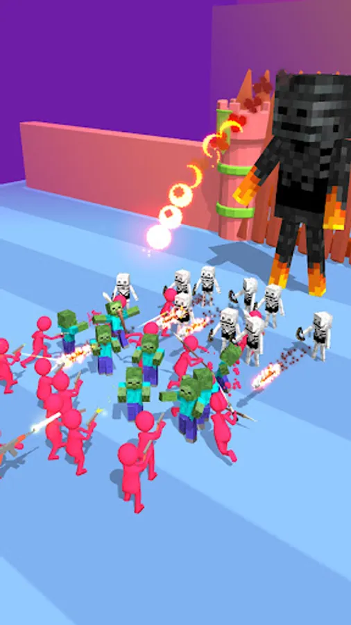 🎮 Build up your army, run and lead the crowd, and start a gun clash against the craft-run enemies to become the best kingdom defender warriors.