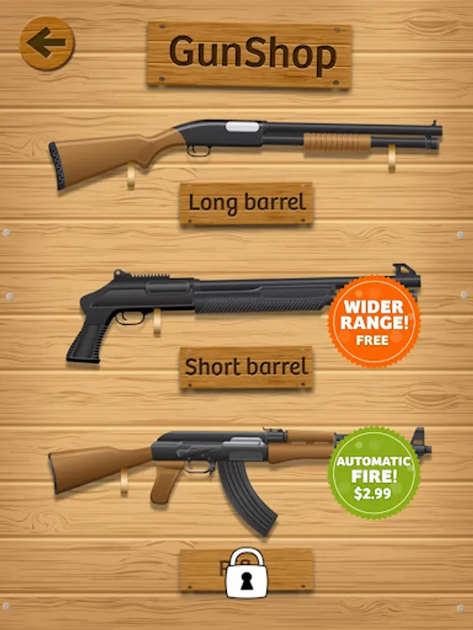 * Three guns to choose from, including the automatic rifle for wild and reckless hunting