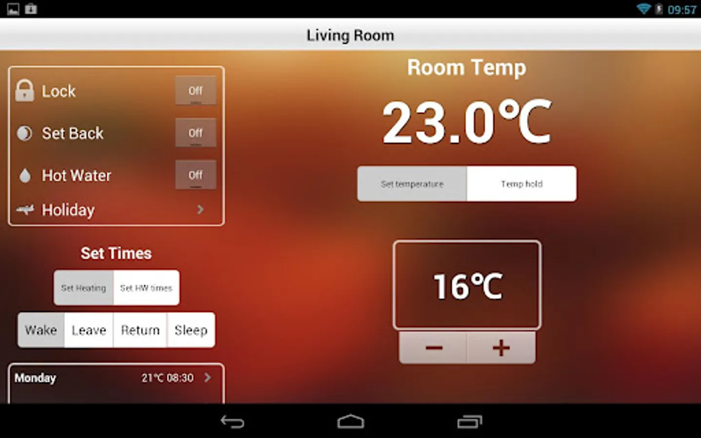 Off on holiday for a few weeks? No problem, use the Holiday mode to keep your heating ticking over while you’re away.