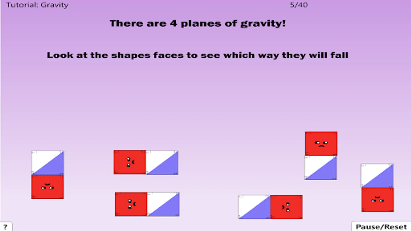 -There are 4 planes of gravity, look at the shapes faces to see which way they will fall.