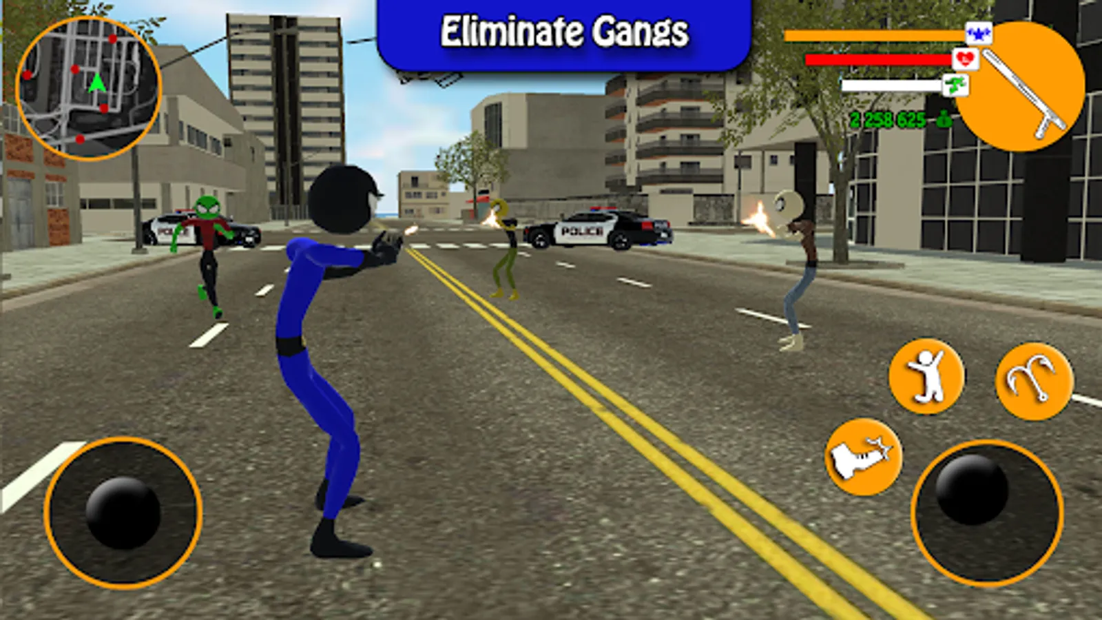 As us Stickman police officer your job is protect the grand vegas city and fight the other stickman evil gangster clones to become the new superhero stickman officer of vegas vice. Since vegas becomes a very dangerous city in the last days, so it your duty now as us stickman police officer to bring the peace again to the streets.