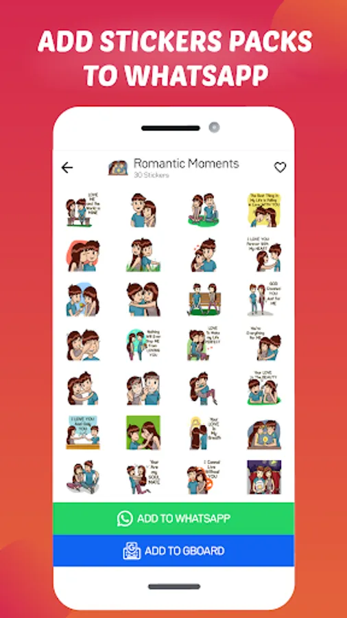 Express your feelings on very special day with valentine day stickers, birthday stickers, marriage anniversary stickers, wedding stickers, love stickers, love couple stickers, romantic moment stickers, friendship day stickers, adult stickers, flirty stickers, dirty stickers, breakup stickers and many other stickers for whatsapp and Gboard.