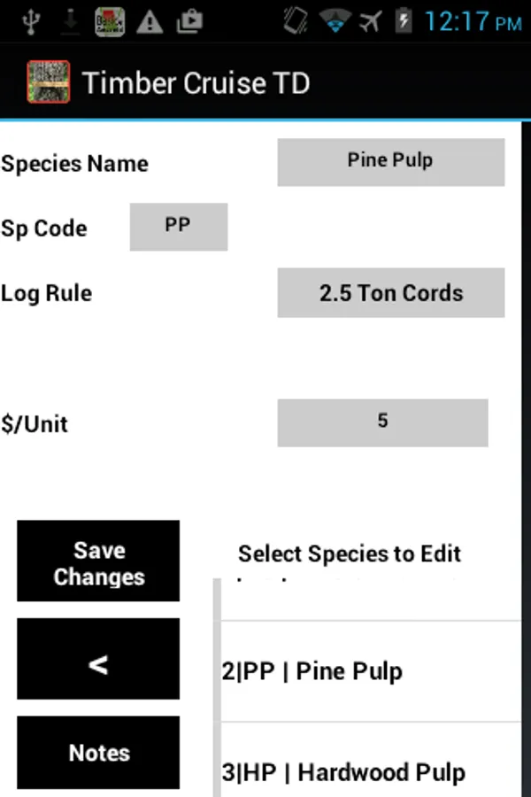 • User can also enter stumpage values by species for saw timber and pulpwood.