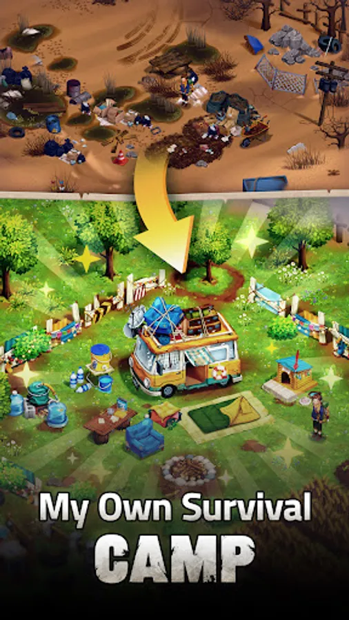 Merge right away to build your safe zone! A cozy camp with friends is much better than a luxurious mansion.