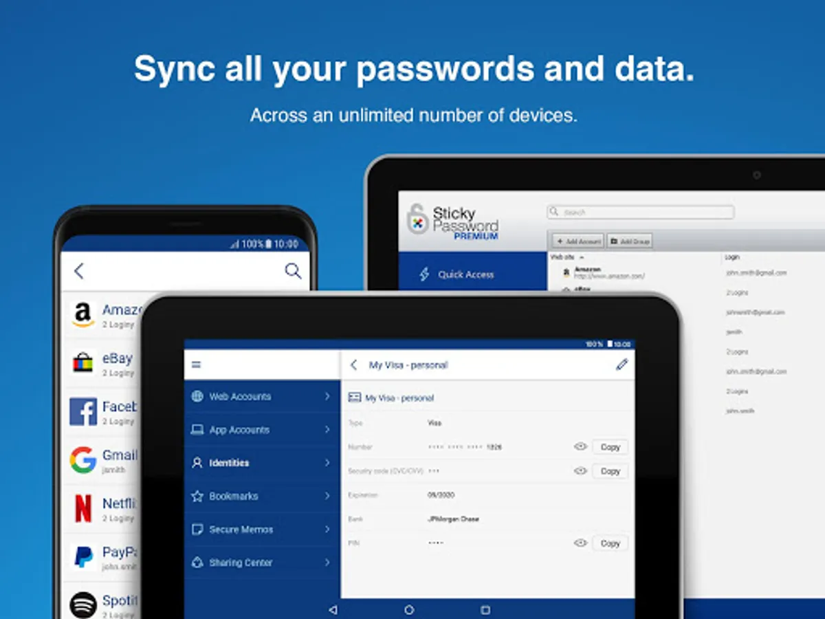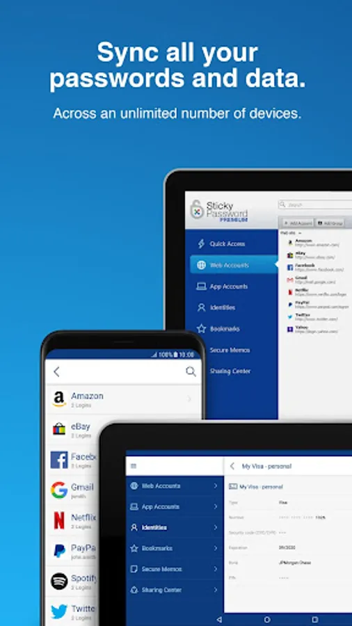 • Sync all your passwords and credentials to all your devices. Access them anywhere.