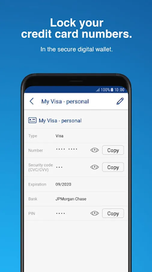 • Keep your credit card numbers in the super secured vault that only you can access.