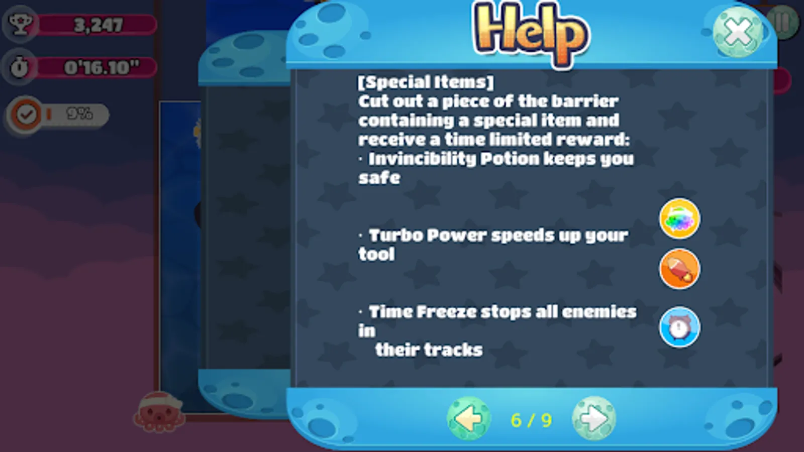 ・If an enemy, or enemy bullet, hits you or the line of your cut, you lose a life.