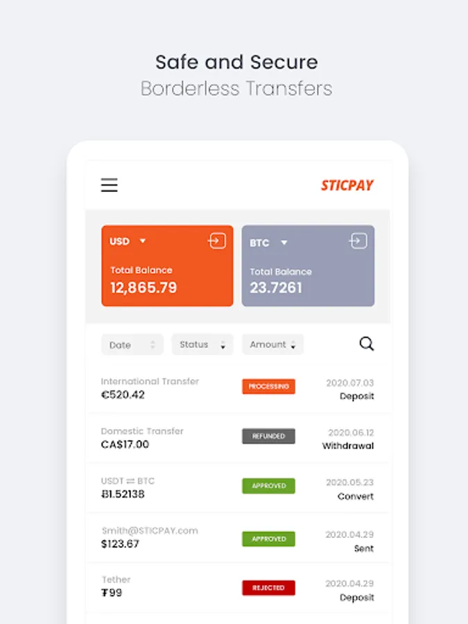 Transfer and receive money faster and easier with STICPAY, the international digital wallet.