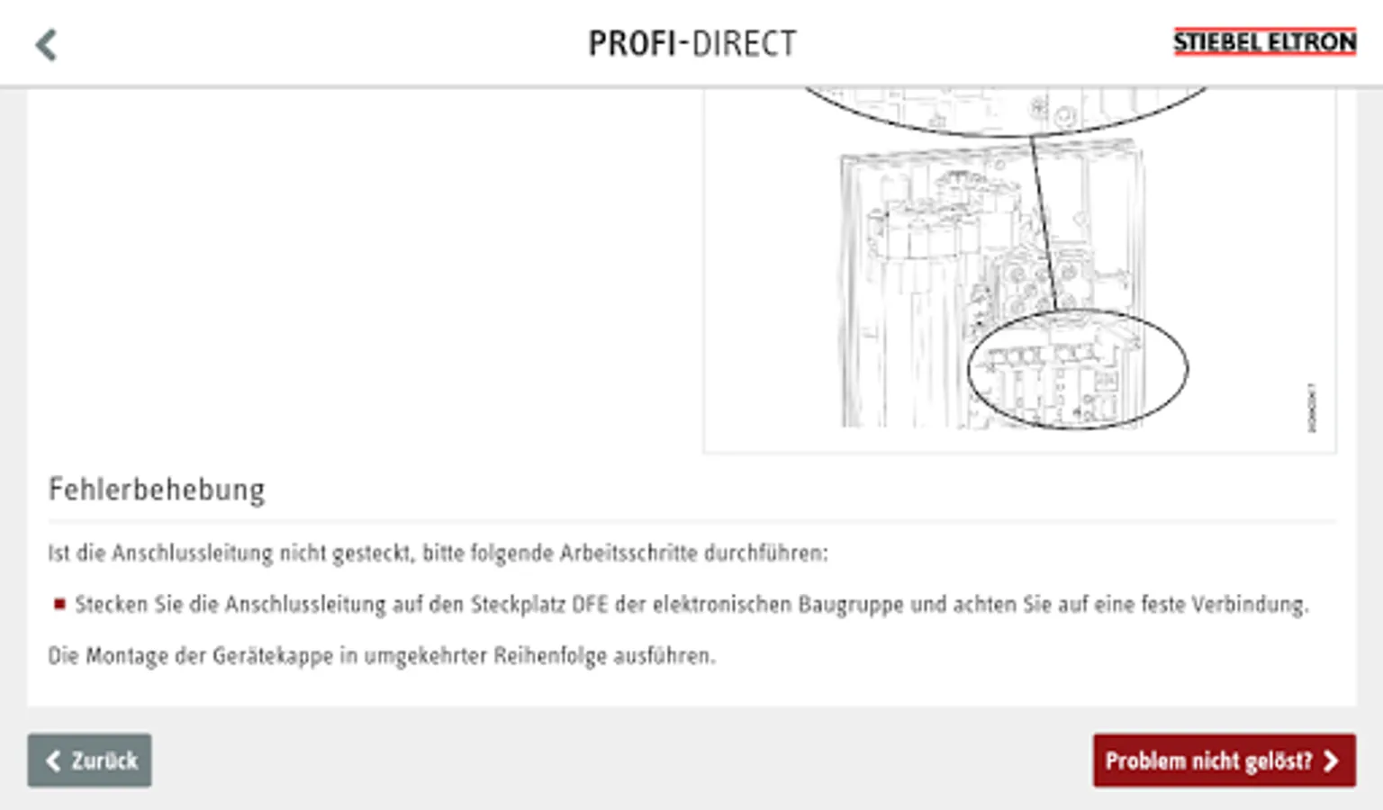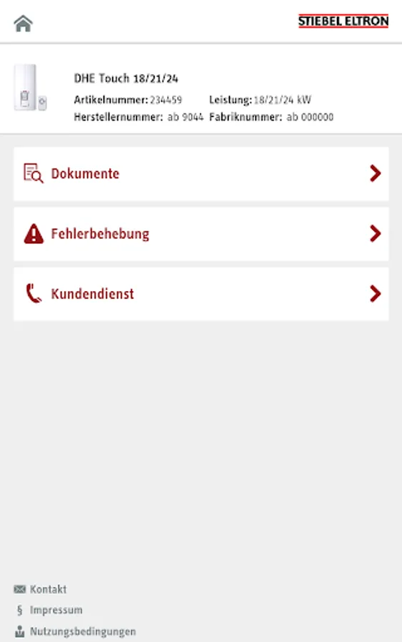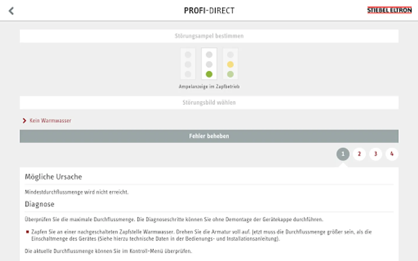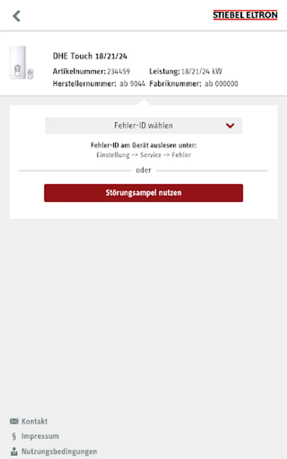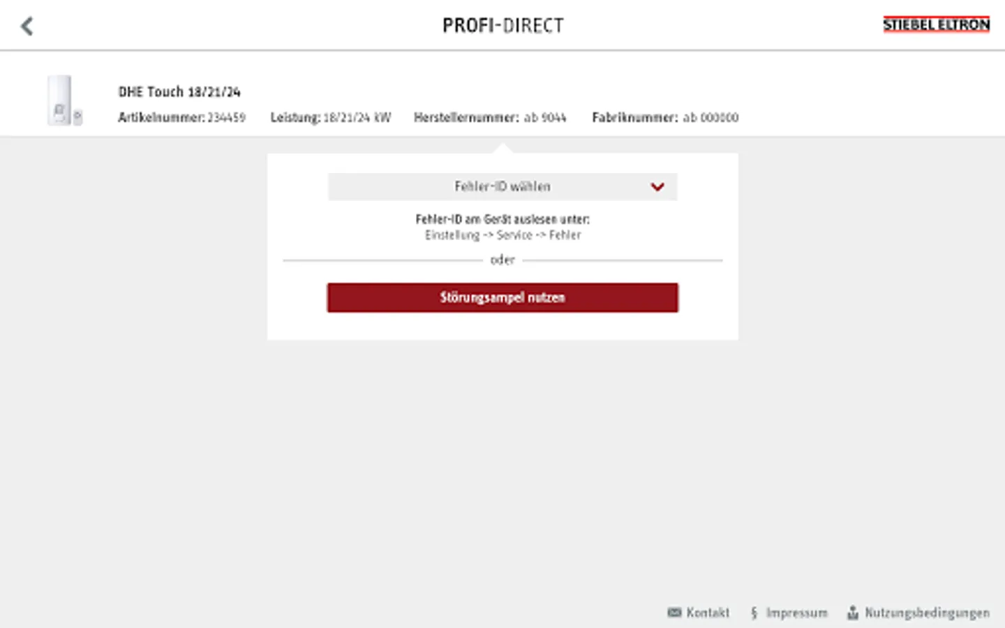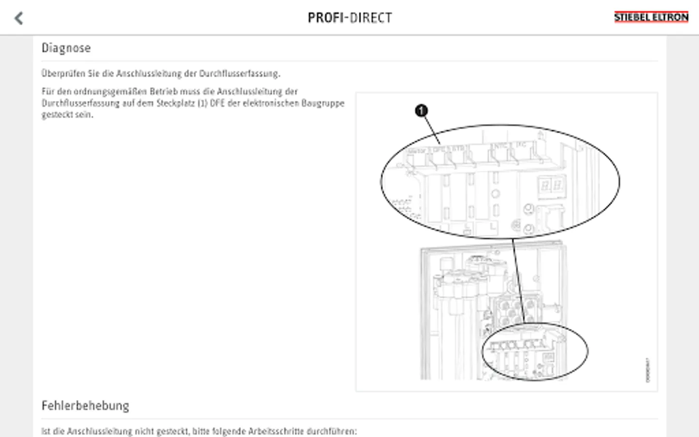 This app is the ideal service tool to enable contractors to diagnose faults and carry out repair work on STIEBEL ELTRON instantaneous water heaters. Simply scan the QR code on either the type plate or the appliance display screen to receive all of the required service information, such as step-by-step diagnostics, relevant spare parts, conversion instructions and product-specific documents. With this app, you'll always have all the information you need in your pocket – on your smartphone or tablet.