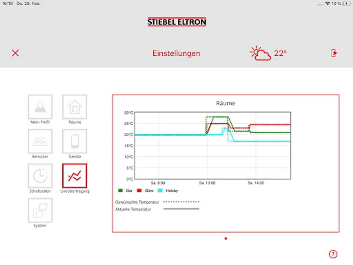 With EASYTRON Connect, you can adjust your heat pump heating from STIEBEL ELTRON conveniently via the app from the sofa or remotely - the entire apartment or room by room. So you always come to a warm home. Unlike most conventional individual room controls, EASYTRON Connect is specially tailored to our heat pumps. The individual room control influences the heat pump and optimally supports its operating states.