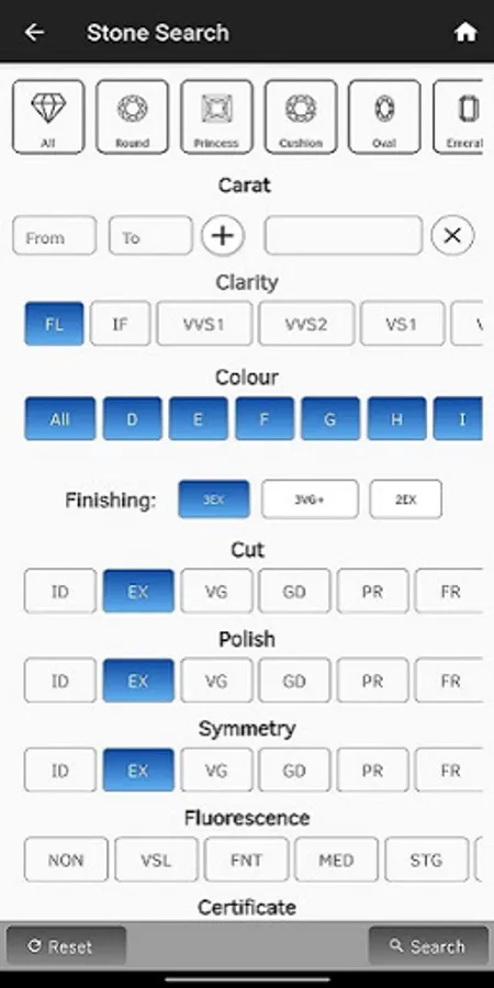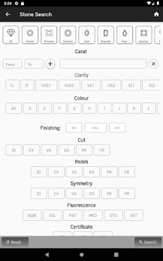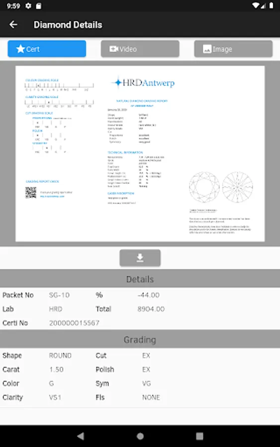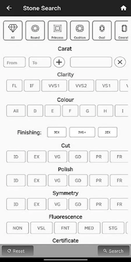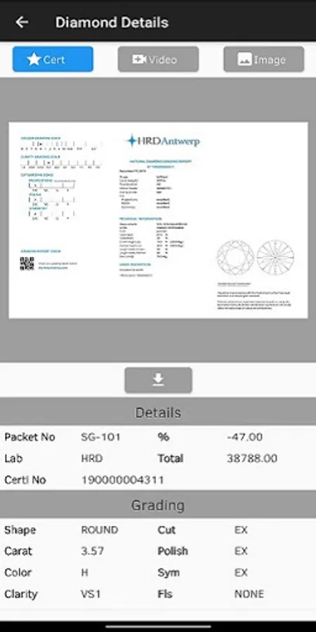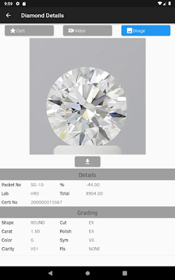This is an application for diamond vendors who are looking to purchase the diamond and want to check its availability before visiting the store. The app also displays the certificate, image and video of the diamonds.