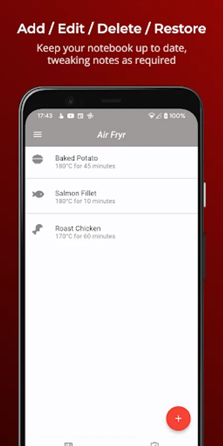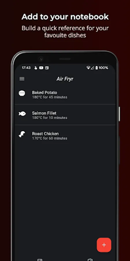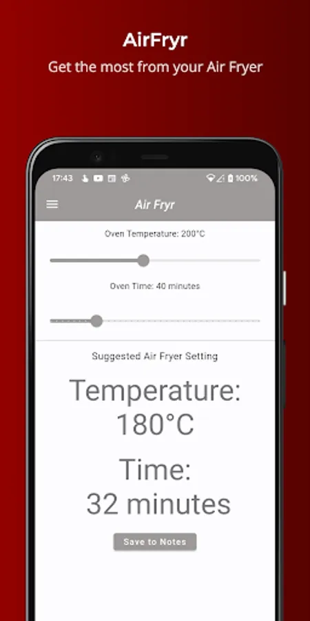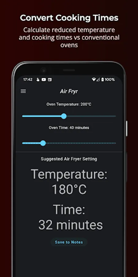 Use Air Fryr to calculate a reduced temperature and cooking time for dishes you would normally make in a conventional oven, and save notes in the notebook feature to come back to again and again!
