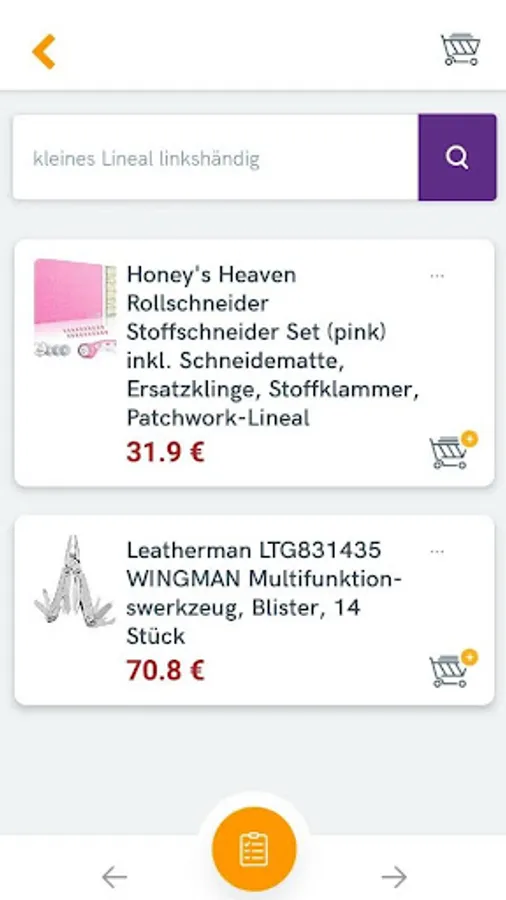 Simply photocopy the list, the items from the list are immediately displayed with price, article number and real-time availability and can therefore be ordered in the corresponding order platform.