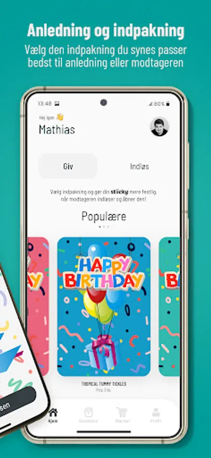 Modtageren af en Stiicky holder blot sin telefon hen til gavemærket, der automatisk læser og udløser den personlige hilsen og eventuel pengegave på en ny overraskende og sjov måde, der vækker smil og glæde.