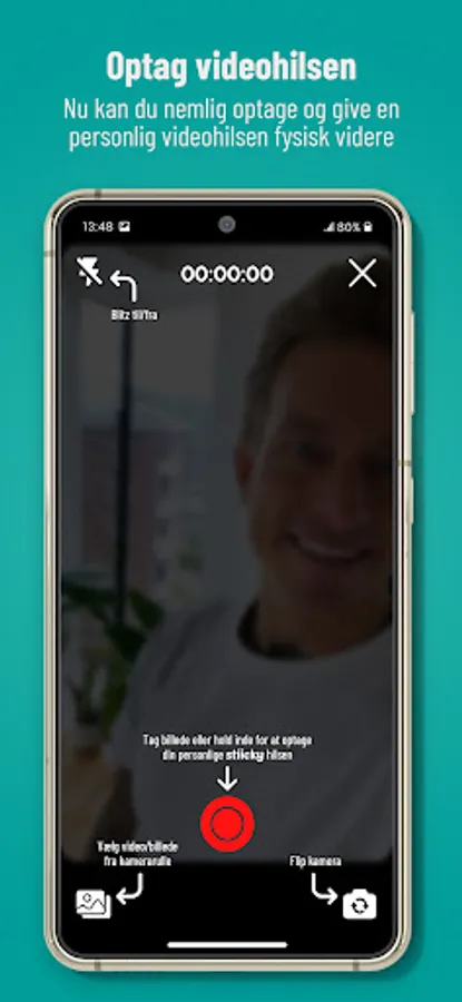 Du aktiverer gavemærket via denne app, hvor du enten kan optage eller uploade en personlig hilsen. Om den skal være rørende, kærlig, venlig, betænksom eller sjov, ja, det er helt op til dig.