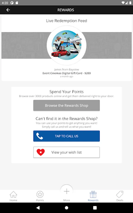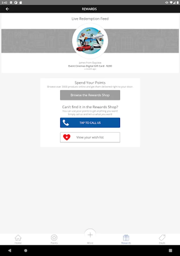 - See a live redemption feed to see what other members are currently redeeming with their points.