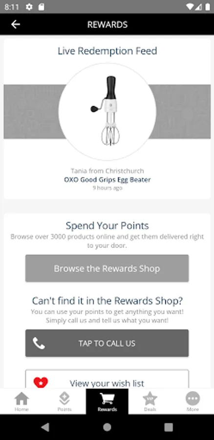 - See a live redemption feed to see what other members are currently redeeming with their points.