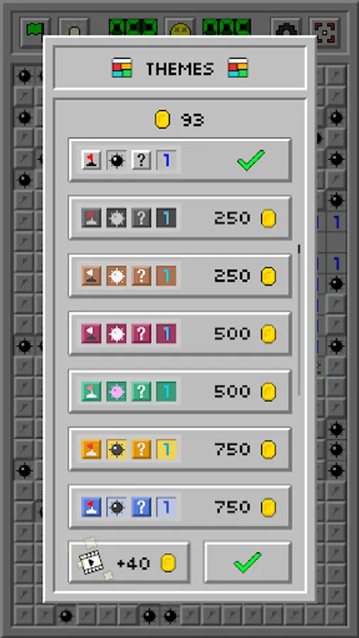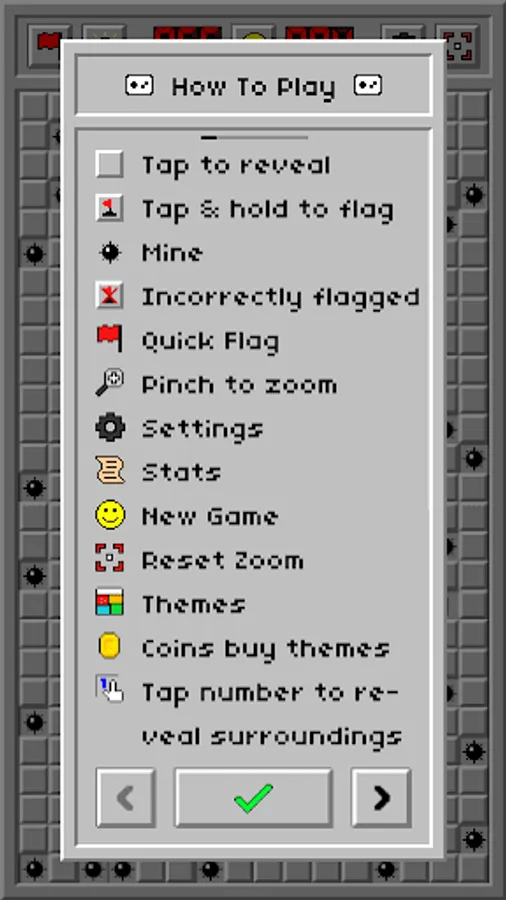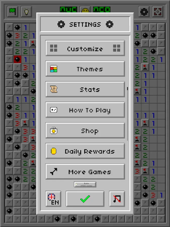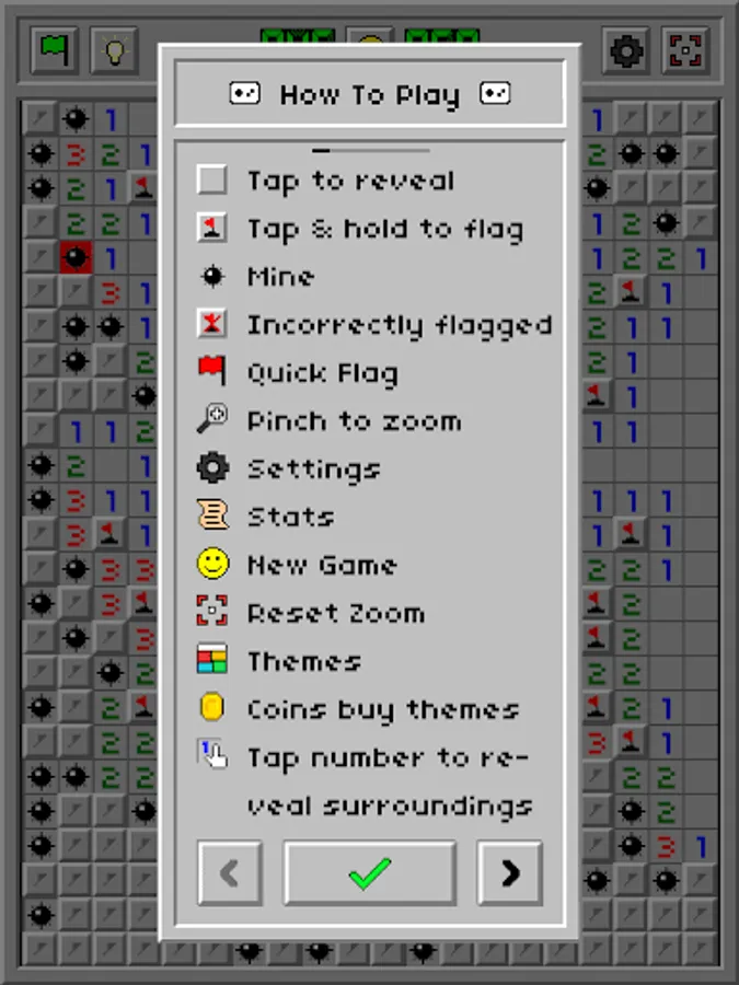 • 50+ gorgeous retro themes: Unlock these themes by earning coins. Earn coins for flagging mines and winning rounds