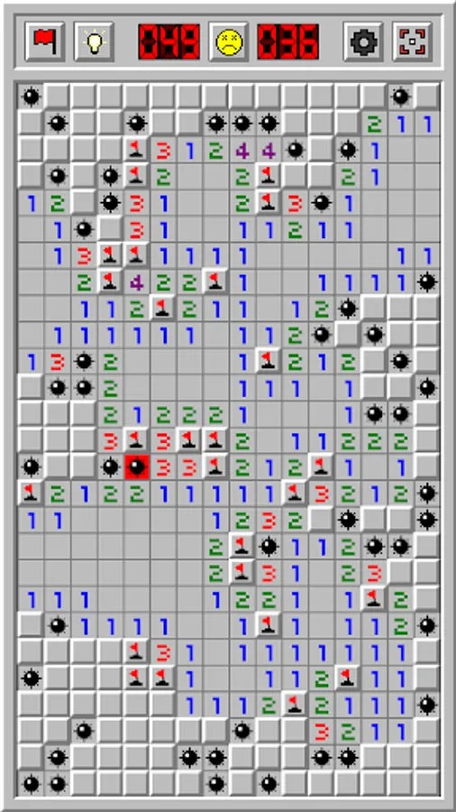 • Hints: The hint button will highlight the surrounding of a cell which is already opened, and from which it is guaranteed to make progress