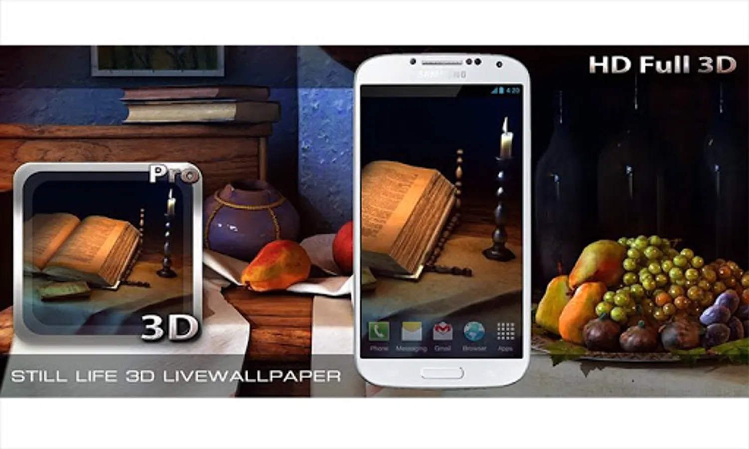 Installation: The main screen (long press) → Live Wallpaper →Still Life 3D live wallpaper