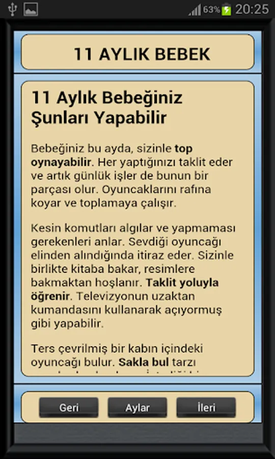Our application development can learn from month to month baby with a detailed explanation, you can take the necessary measures comparing the development of your baby.