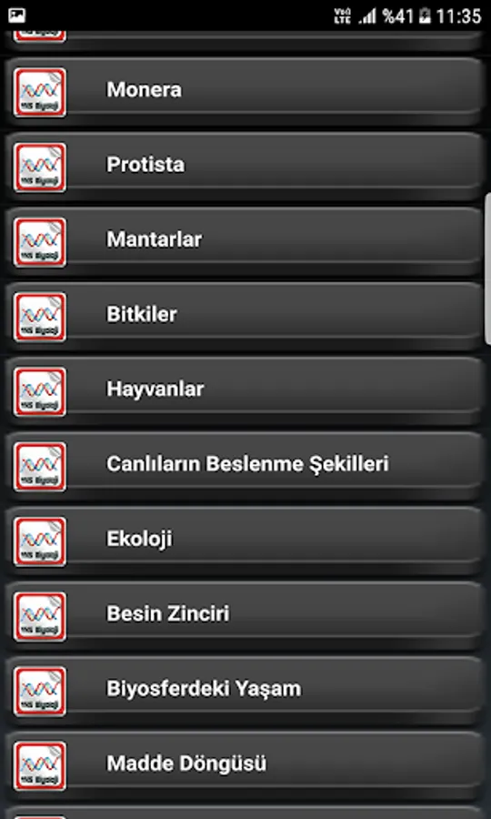 If you are preparing to TYT and AYT, if you are looking KPSS exam topics of biology in high school biology or summaries of all issues formulas uygulamad right here if you want to get found under my hand. All of our applications in biology lectures are available as summary. Thanks to our carefully prepared for you at home and in applications involving hundreds of formulas and lecturing, at school, on the bus will be there always be at your biology textbooks and course can work anywhere. In addition, our application in physics, chemistry and mathematics can also find links to, you can carry your notes with you by downloading our other applications all work. TYT and will not need to worry anymore AYT or KPSS biology.