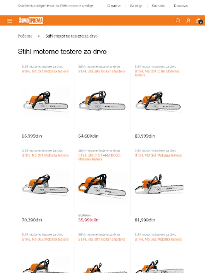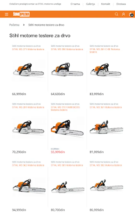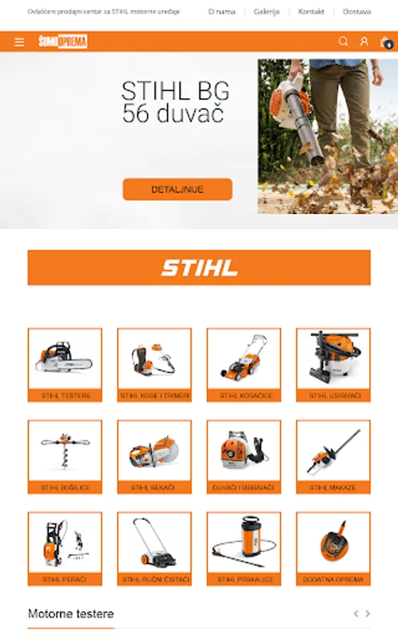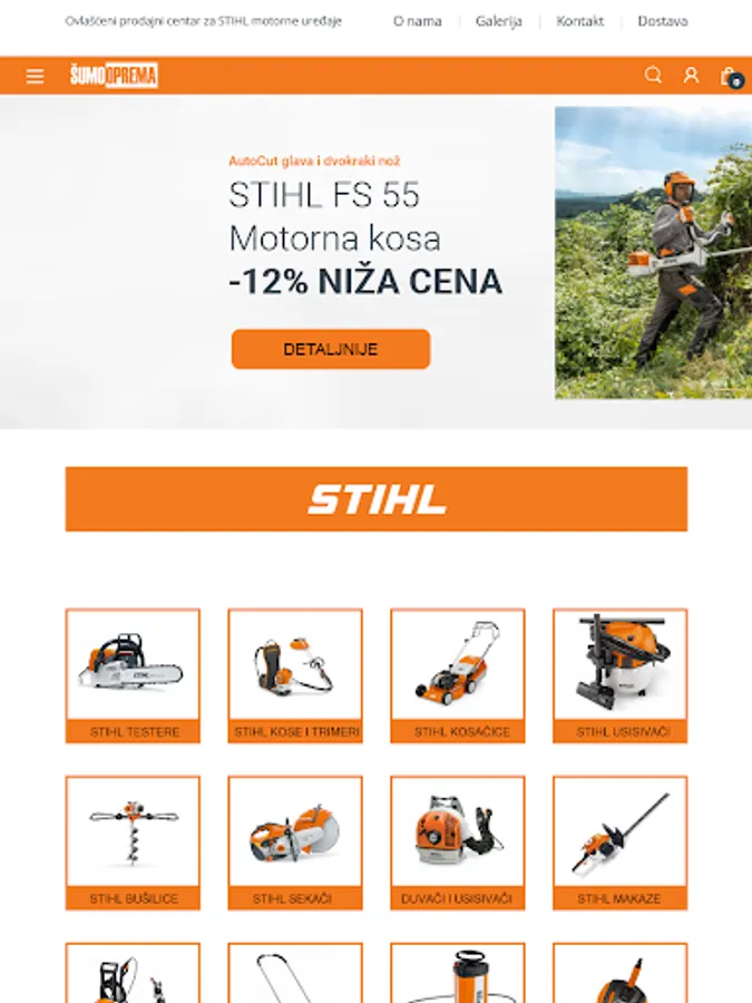 The company Šumooprema was founded in 1990 in Belgrade. It is part of a long-term family business started back in 1969. Šumooprema is an authorized specialized seller and servicer of STIHL and VIKING devices, we also sell spare parts and equipment for chainsaws, mowers, chainsaws, trimmers, etc. We are leaders in the sale of spare parts and equipment for chainsaws, lawn mowers, trimmers, motor hair and other tools and equipment. Our offer includes chains, guides, sprockets, sharpening files, sharpening patterns for chains, electric sharpeners, machines for riveting and untying chains, spark plugs, oils and protective equipment, cylinders, pistons, electronics ...