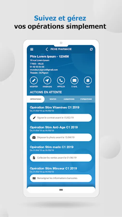 StimPharma is a multi-network application for pharmacy players that optimizes their point-of-sale visits: contract signing, operation monitoring, sales statement, linear compliance, visit report, all in a single mobile application !