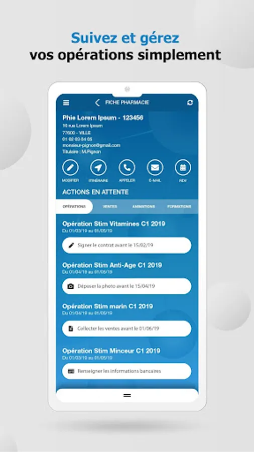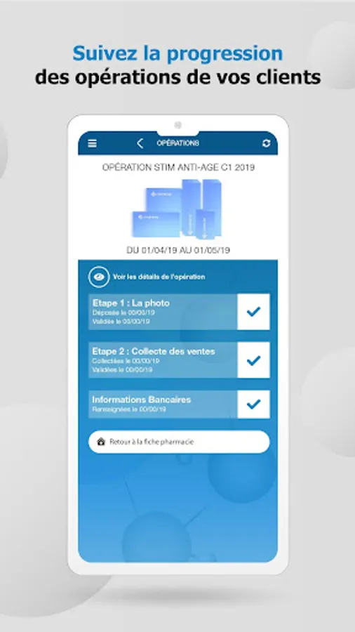 StimPharma is a multi-network application for pharmacy players that optimizes their point-of-sale visits: contract signing, transaction monitoring, sales statement, linear compliance, visit report, all in a single mobile application !