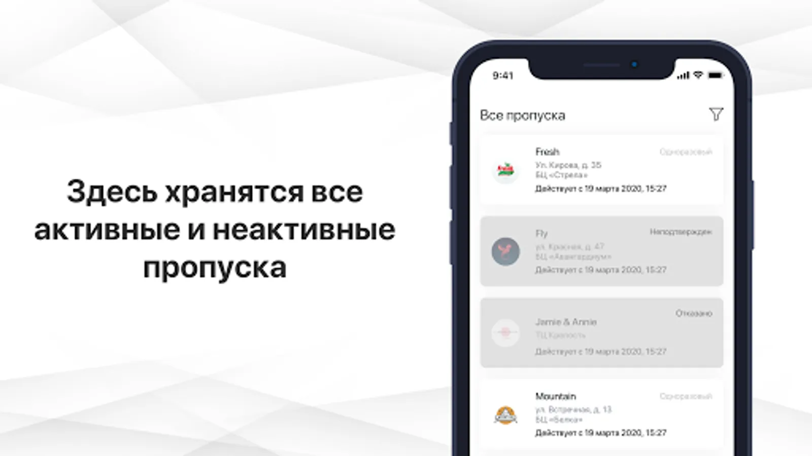A pass can also be created by an object employee and, after creation, appears in this user application along with an SMS / PUSH notification.