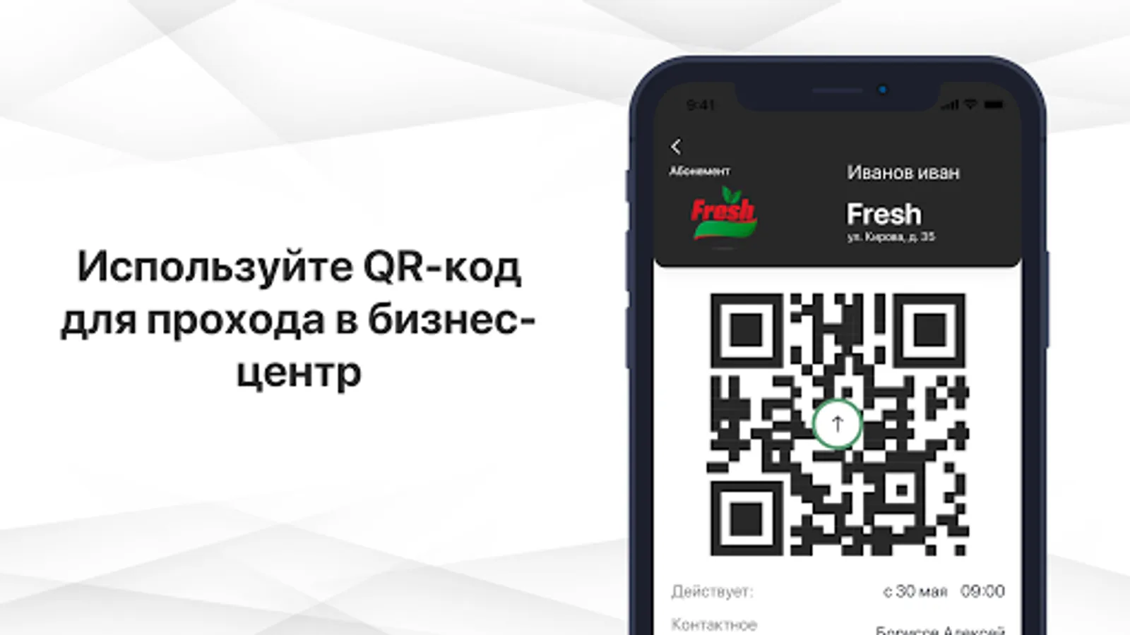 When you open the pass, a dynamic QR code is generated, which is validated by the pass device at the facility.