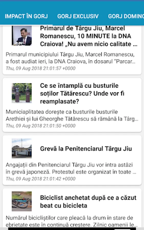 So you can read everything that interests you in one place. It includes news from the following publications in Târgu Jiu / Gorj: Impact in Gorj, Gorj Exclusiv, Pandurul, Gorj Domino, Gorjeanul.