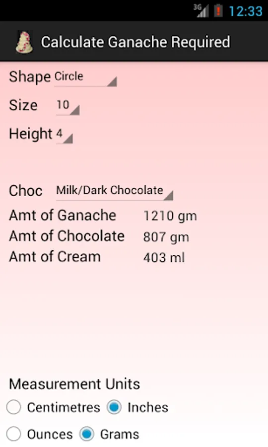 - Tell you how much chocolate and cream you will need to make enough ganache to cover a cake you specify.