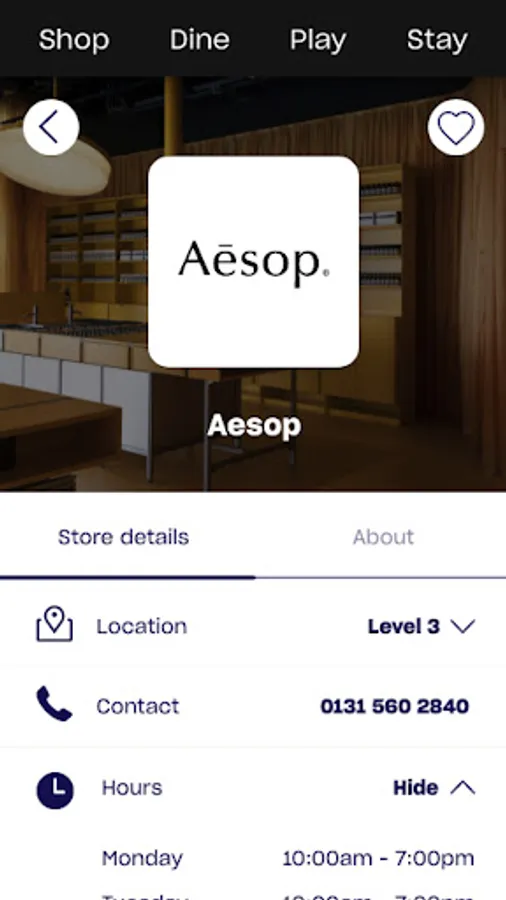• Browse information and opening hours for every store