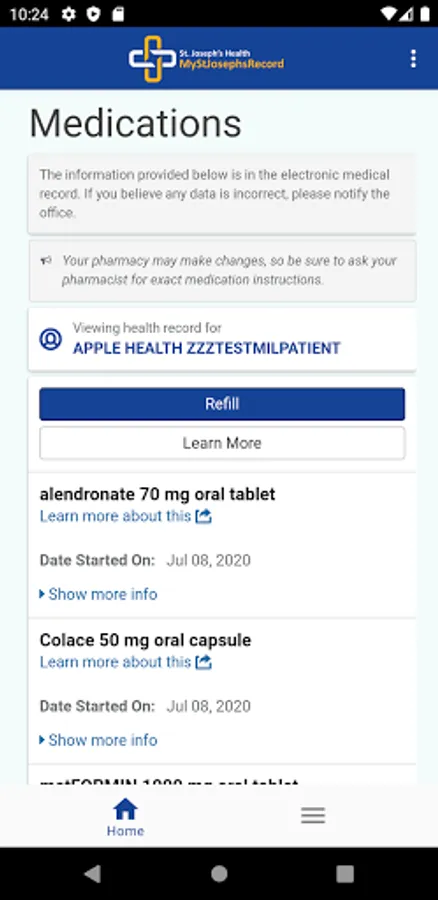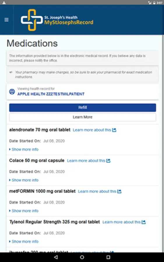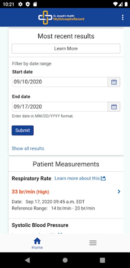 SJH Patient Portal Application allows SJH patients to view their personal information on a mobile platform.