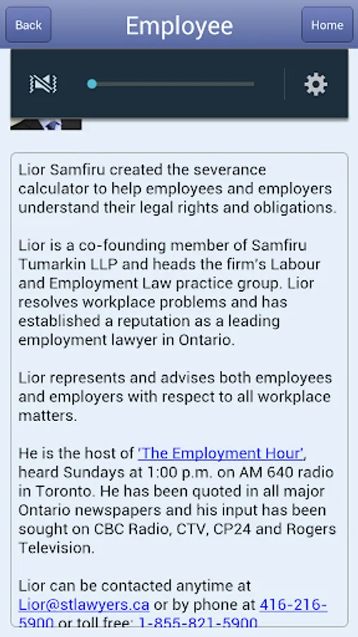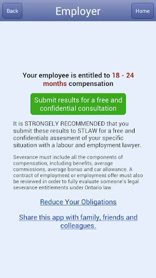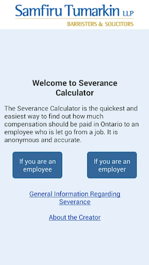 Lost your job? Find out how much severance your employer must pay you. The severance calculator is the easiest way for employees and employers to determine the amount of severance that has to be paid. The severance calculator was created by employment lawyer Lior Samfiru (www.stlawyers.ca; toll free:1-855-821-5900.) to allow everyone to better understand what must be paid if employment is terminated.