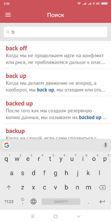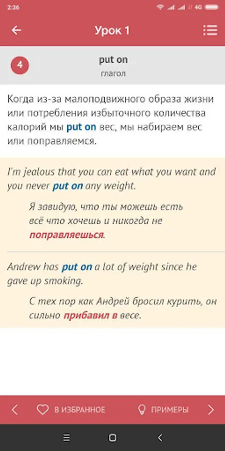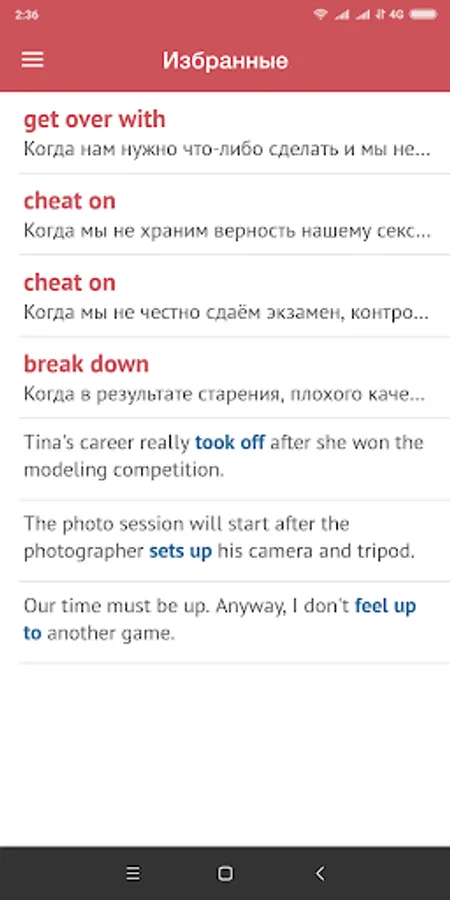 SimpleEnglish Фразовые глаголы is based on extended flash cards grouped into lessons. The extended definitions and full-context sample sentences ensure complete understanding of the meanings, accompanying translation into Russian simplifies memorizing and associating and removes a need to consult a dictionary, randomized selection of test questions every time the test is generated keeps interested and intrigued, while pop-up meanings, quick search, and add-to-favorites features save time and speed up the learning progress.