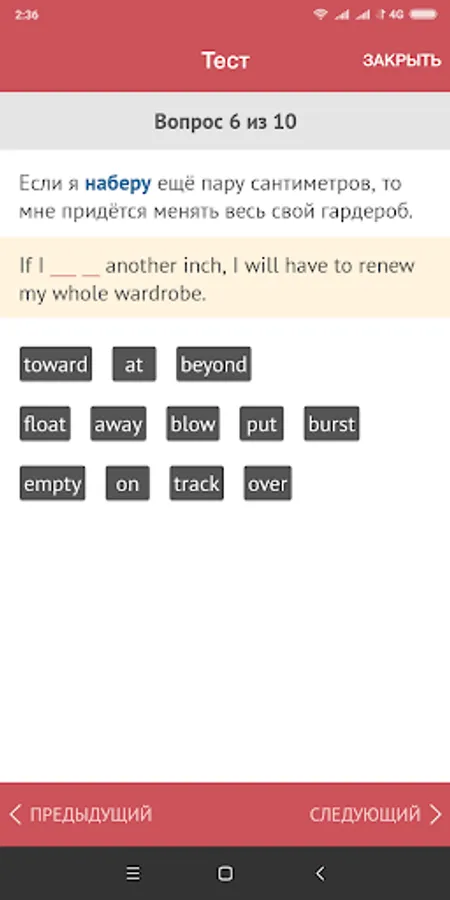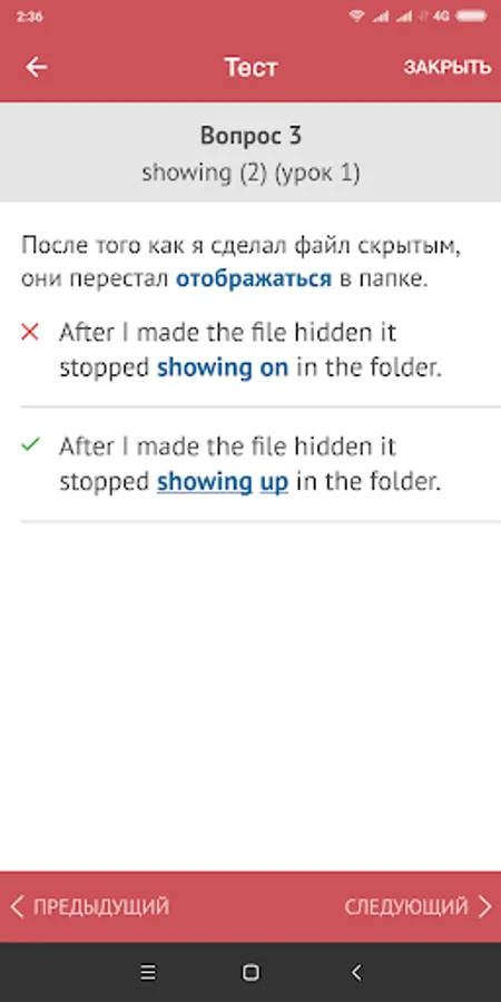 But what makes SimpleEnglish Phrasal Verbs truly unique are the sample sentences and flexibility; the sample sentences are based on situations and describe activities and actions from our everyday life, include the full context and can be instantly used in speech, while the test module with user-defined lessons' range will not let even the advanced learner get bored.